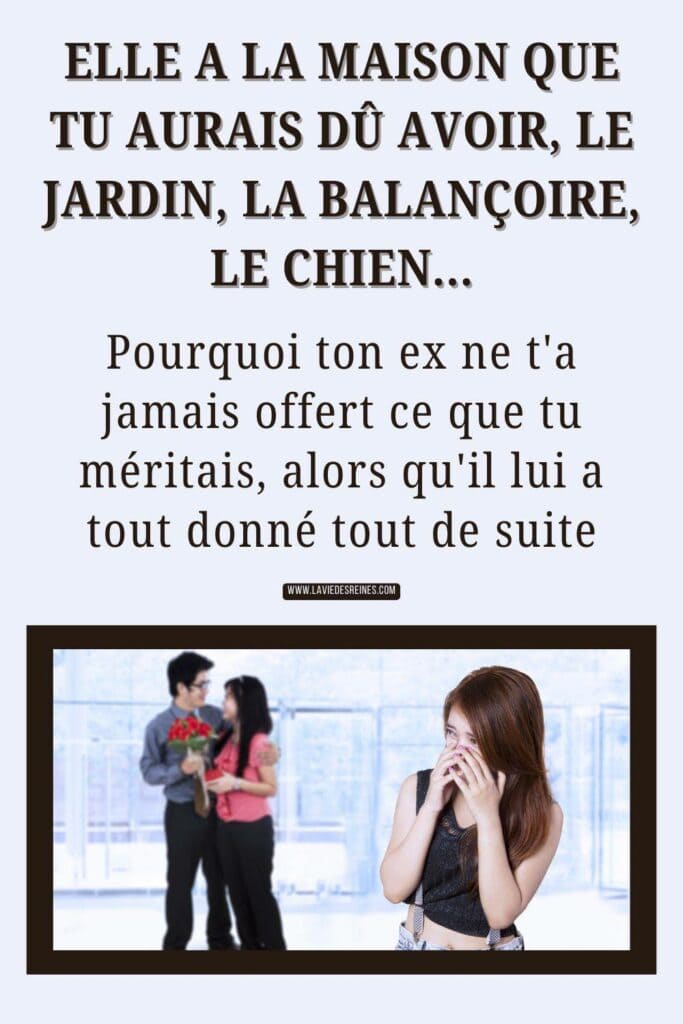 Elle a la maison que tu aurais dû avoir, le jardin, la balançoire, le chien… Pourquoi ton ex ne t’a jamais offert ce que tu méritais, alors qu’il lui a tout donné tout de suite