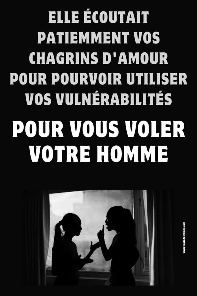 En fait, votre amie les écoutait pour, le moment venu, utiliser chacune de vos vulnérabilités exposées comme autant de portes d’entrée vers l’homme que vous aimiez.
