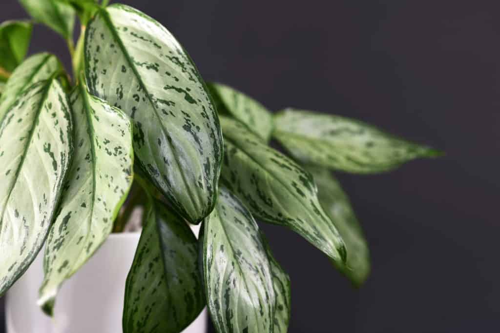 L’Aglaonema est une plante luxuriante et feuillue aux grandes feuilles panachées de blanc ou de rose.