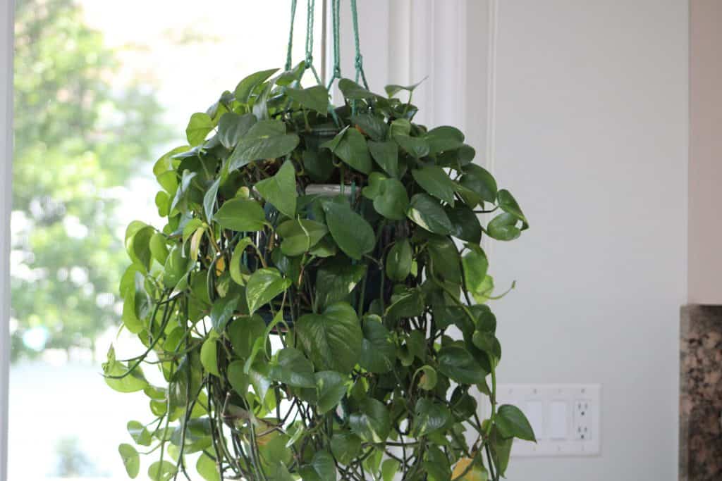 #3 – Le pothos (ou lierre du diable ou Epipremnum aureum) est une plante familière qui ressemble à un lierre et dont les feuilles sont disponibles dans une variété de couleurs allant du vert vif au jaune et au vert panachés de façon attrayante.