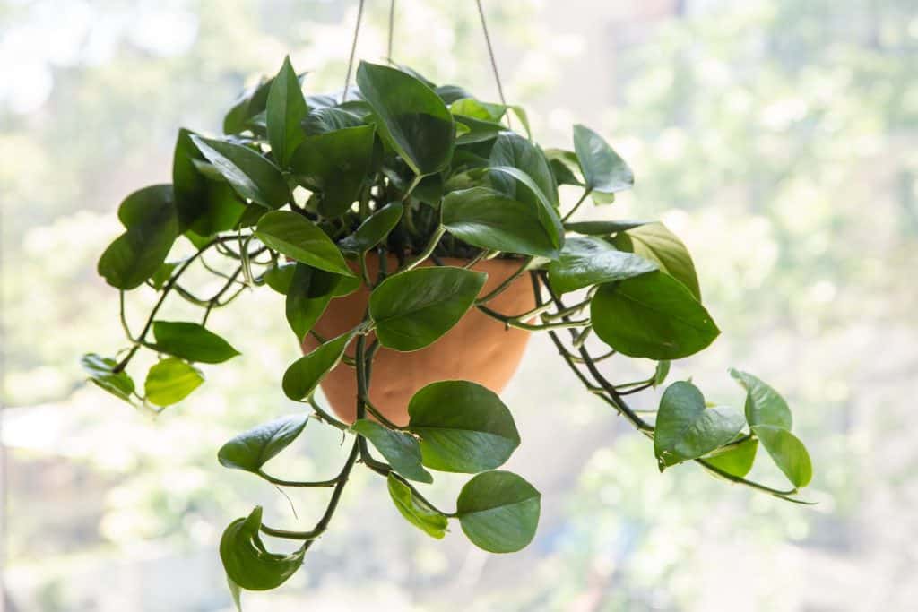 La plante d’intérieur populaire pothos, souvent appelée lierre du diable, se distingue par ses feuilles brillantes en forme de cœur et ses lianes traînantes.
