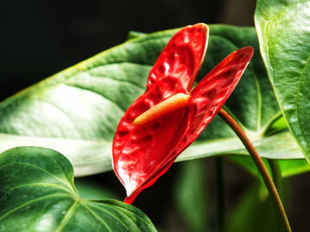 Sous une lumière claire et indirecte, avec de la chaleur et de l’humidité, l’anthurium, également connu sous le nom de fleur de flamant rose, fleurira presque continuellement.