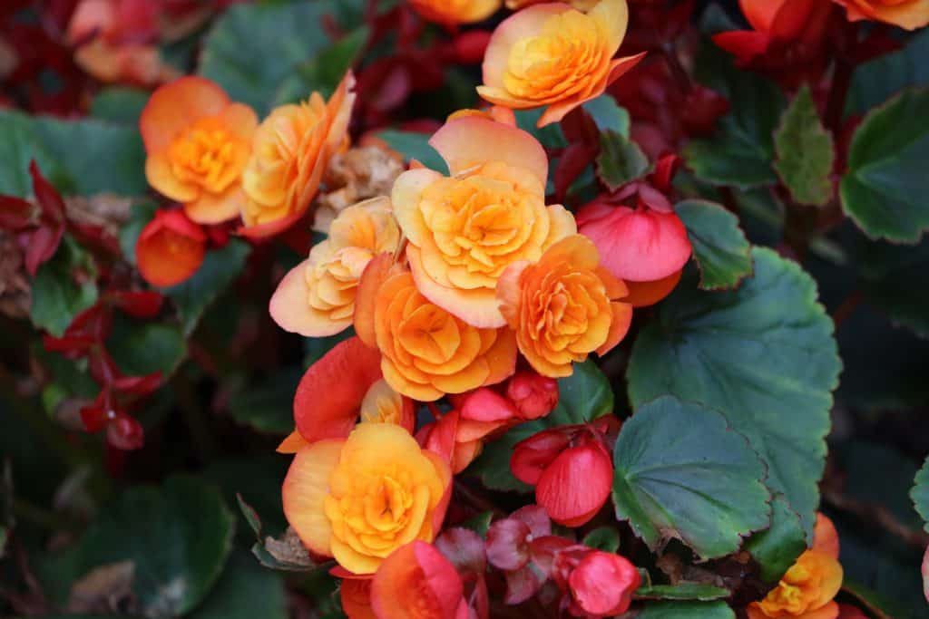 Les bégonias de Rieger et les bégonias de cire sont les meilleurs pour obtenir une floraison tout au long de l’année dans les tons de pêche, jaune, rouge, rose ou blanc.