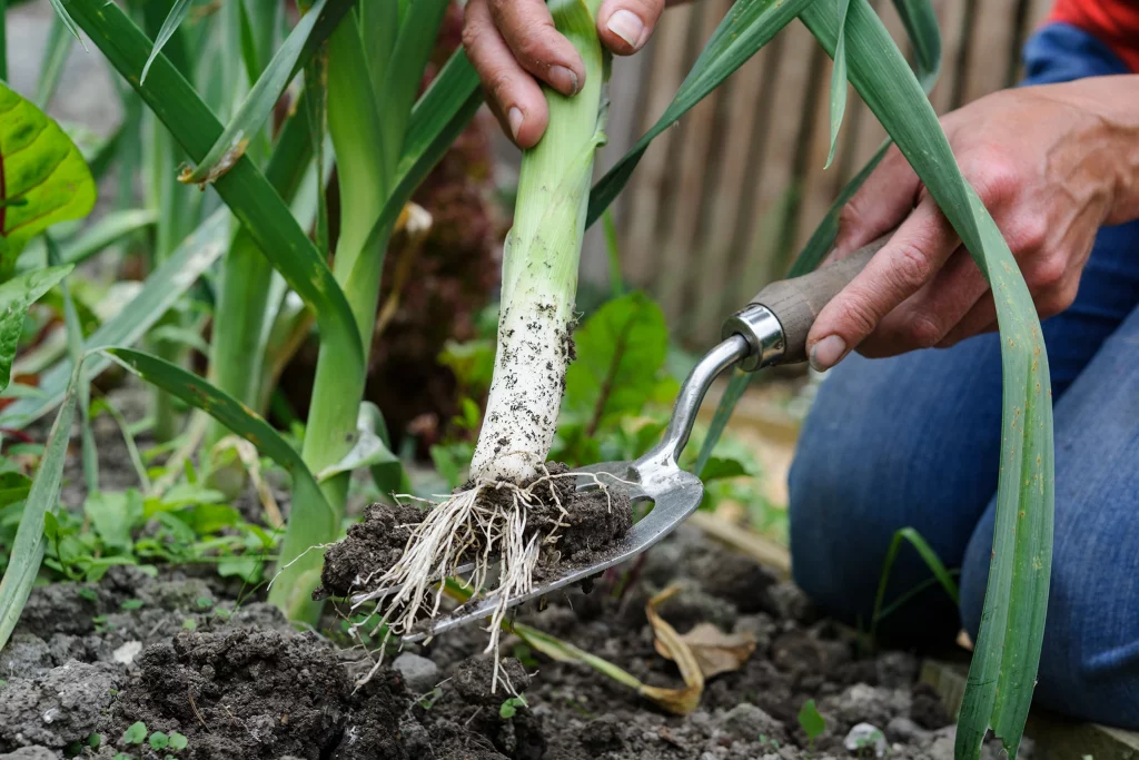 Récolte des poireaux