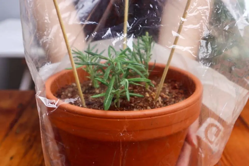 ✔️ Couvrez-la d’un sac en plastique transparent ou d’un dôme hygrométrique pour retenir l’humidité.