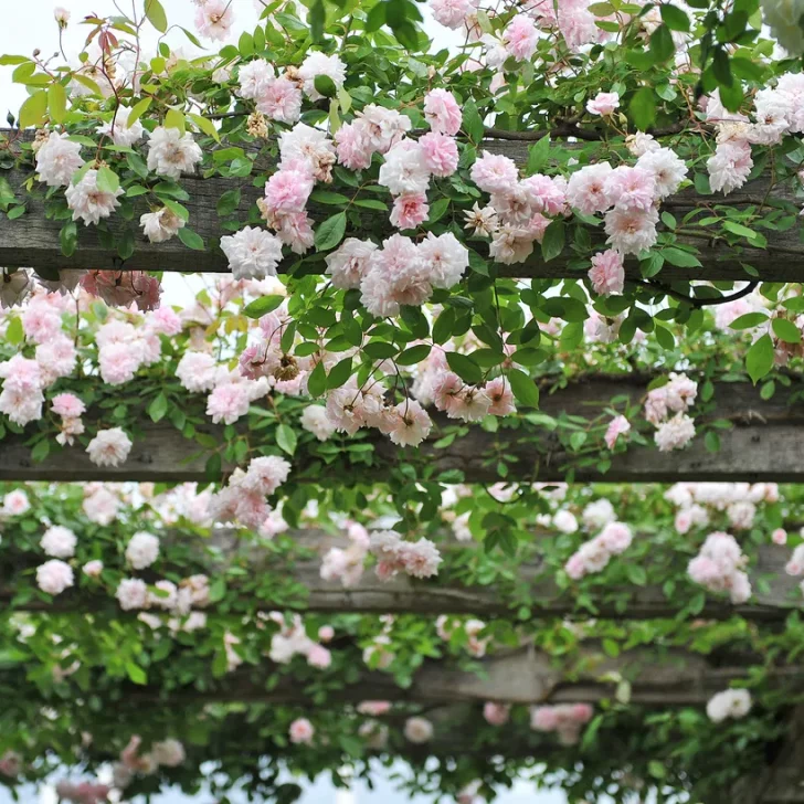 Grâce à leur port robuste, les roses anciennes sont idéales pour les tonnelles et les treillis.