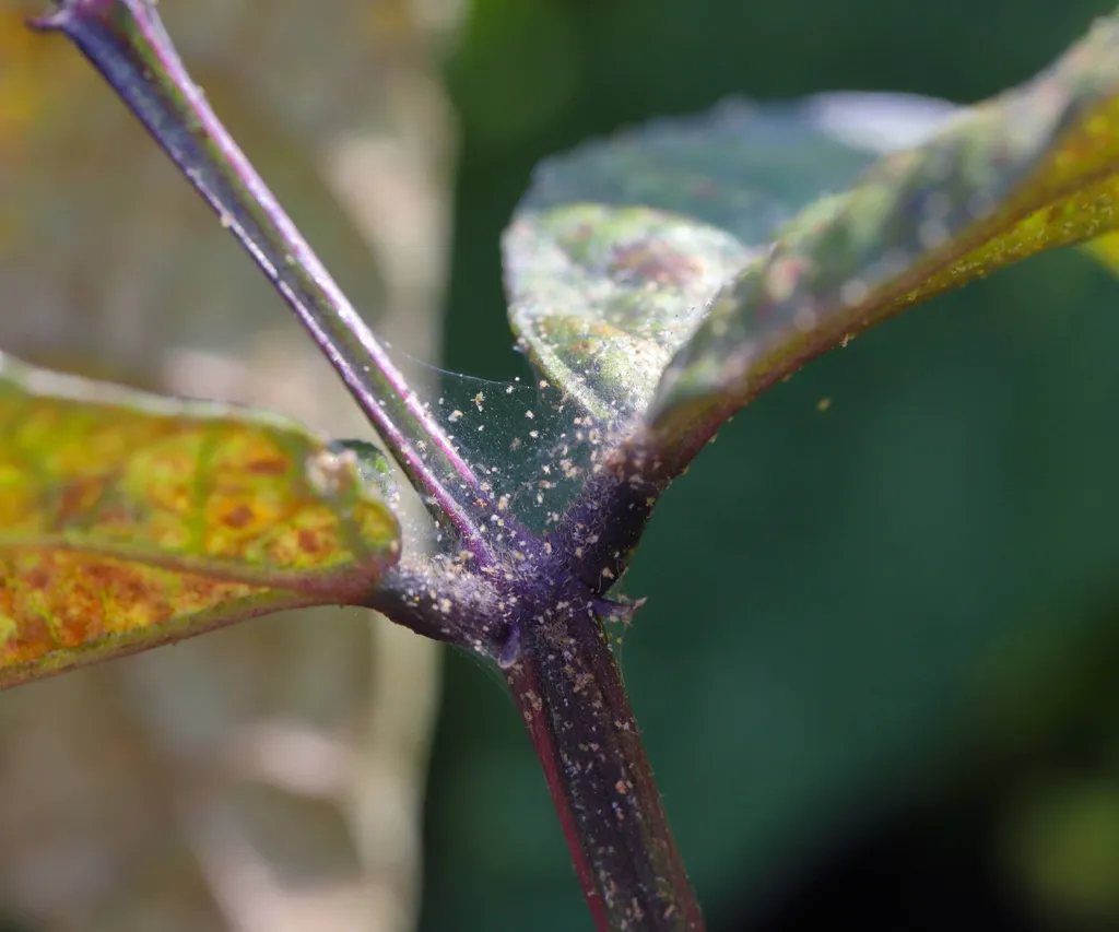 Vous pouvez également voir des toiles sur les feuilles qui aident à propulser le minuscule acarien vers les parties non consommées.