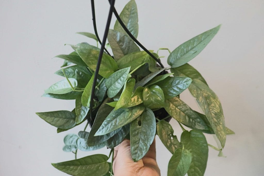 Contrairement aux autres pothos, le Cebu Blue possède des feuilles en forme de cœur profondément incisées, de couleur bleu argenté.